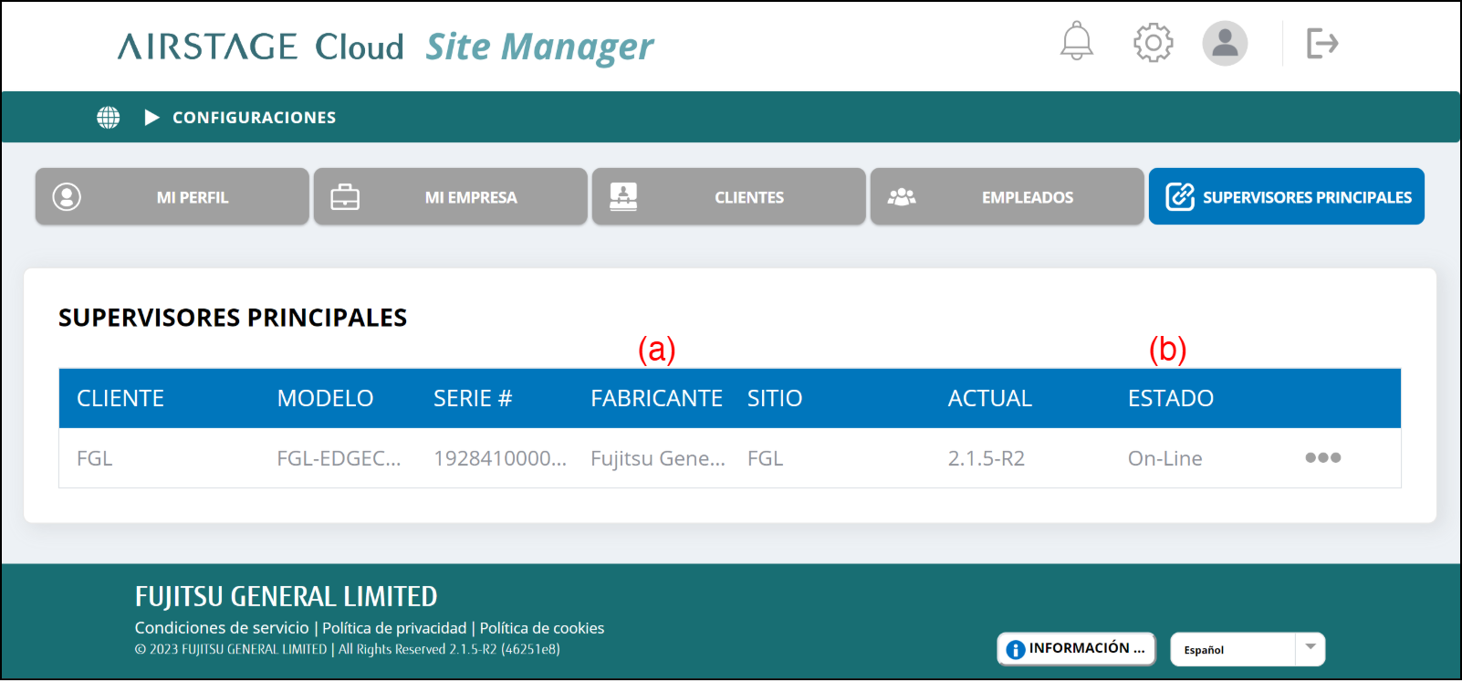 Puede comprobar la información del Supervisor principal.