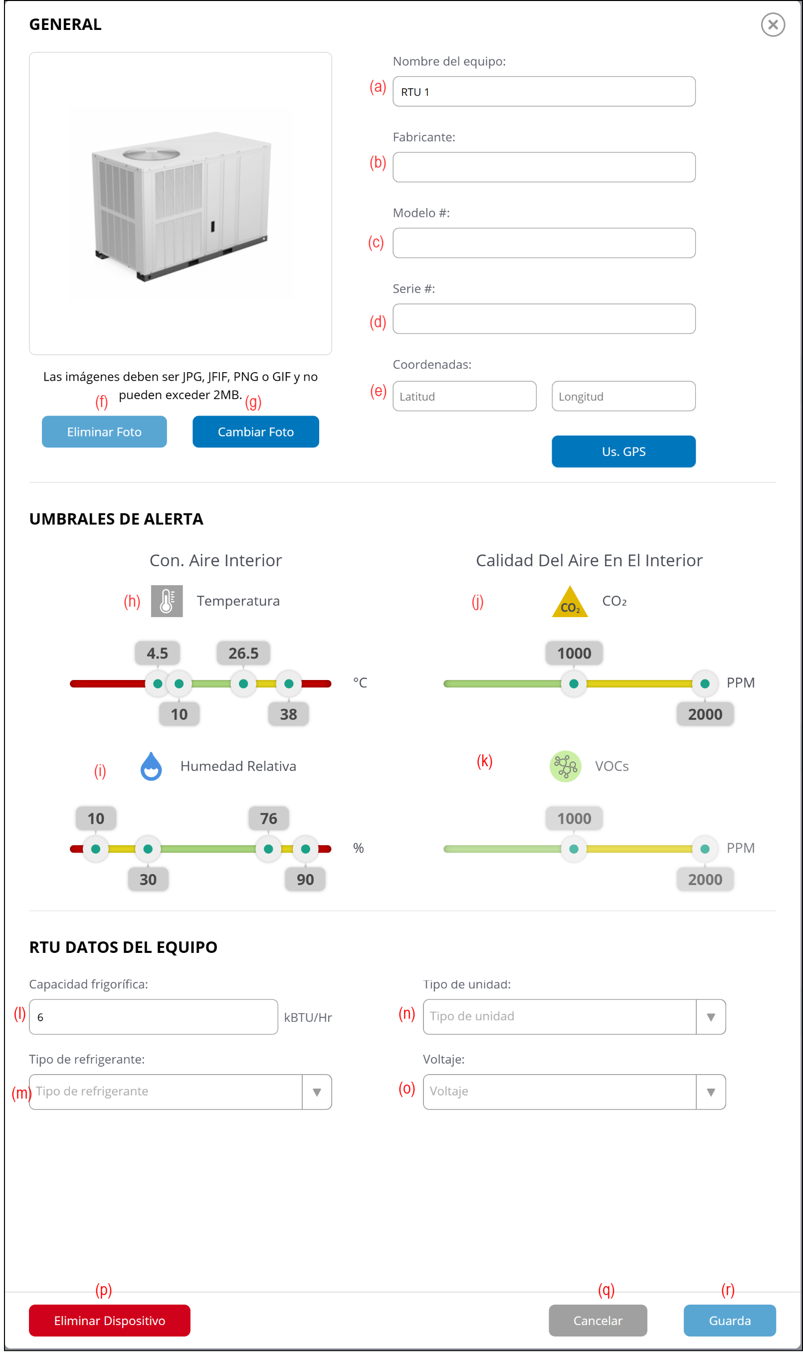 (p) Botón [Eliminar Dispositivo]