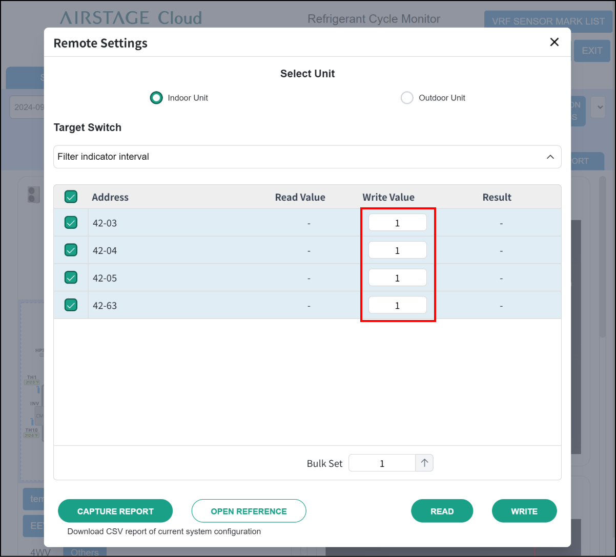 Además, se puede usar “Bulk Set” en la parte inferior de la pantalla para introducir el mismo valor para todas las unidades objetivo mientras se seleccionan múltiples unidades.