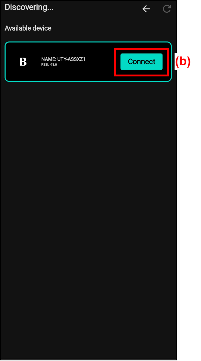 * If the permission has already been granted, this step is not necessary. - The connectable devices are displayed. Tap "Connect (connect)" in the target device (UTY-ASSXZ*) (b).