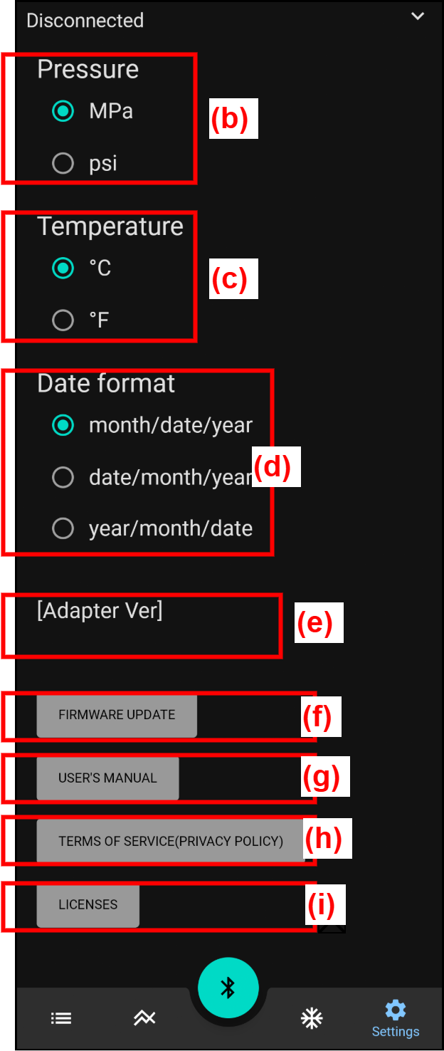 | (b) | Pressure (Unit) | "MPa" or "psi" can be selected. |