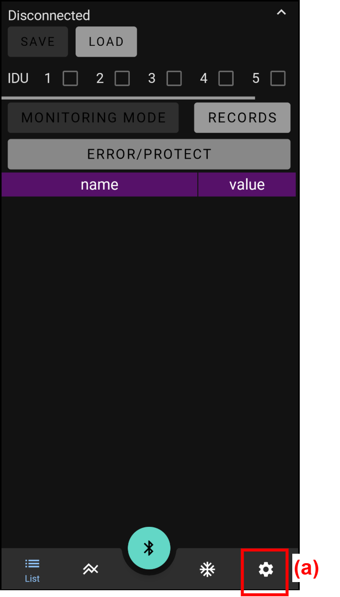 | (f) | FIRMWARE UPDATE (Firmware update) | Firmware of BLE adapter is updated. Tap and operate according to the instructions displayed in this app. |