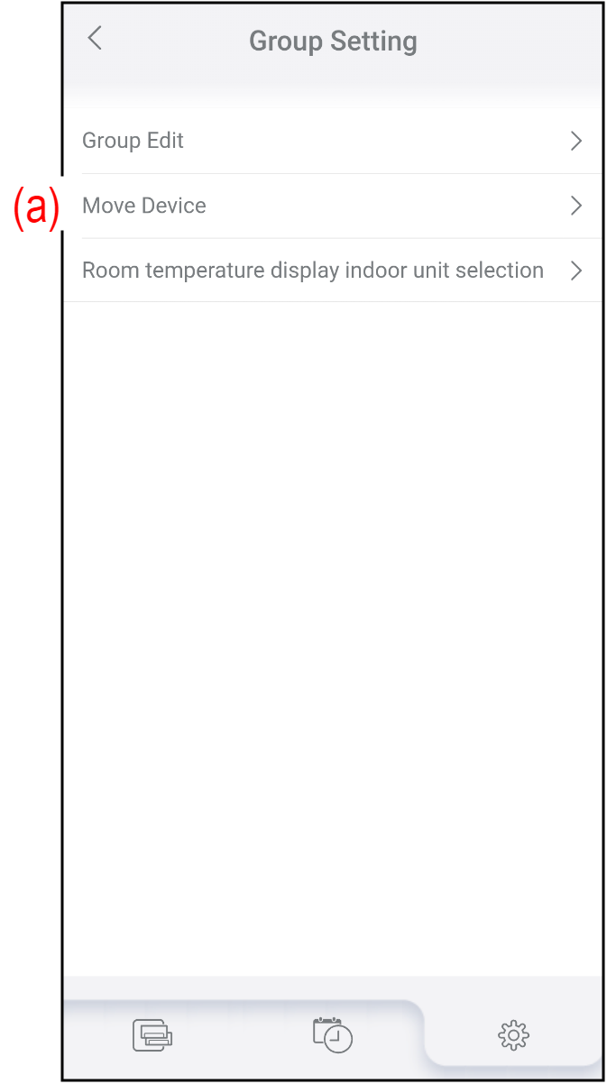 - Докоснете (a) на екрана „Group Setting“, за да преместите климатика в друга група.