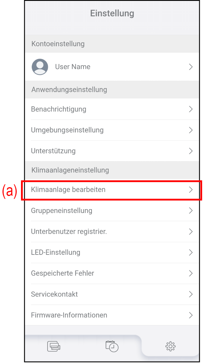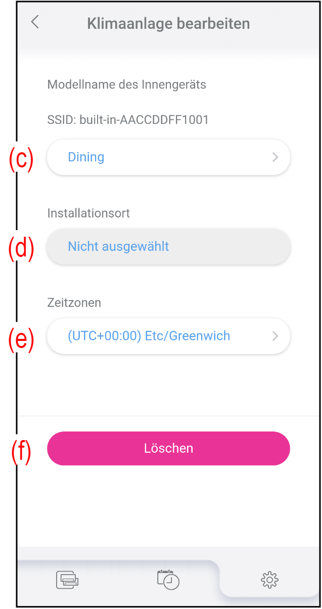 Sie können den Namen der Klimaanlage bearbeiten und die Registrierung der Klimaanlage zu löschen.