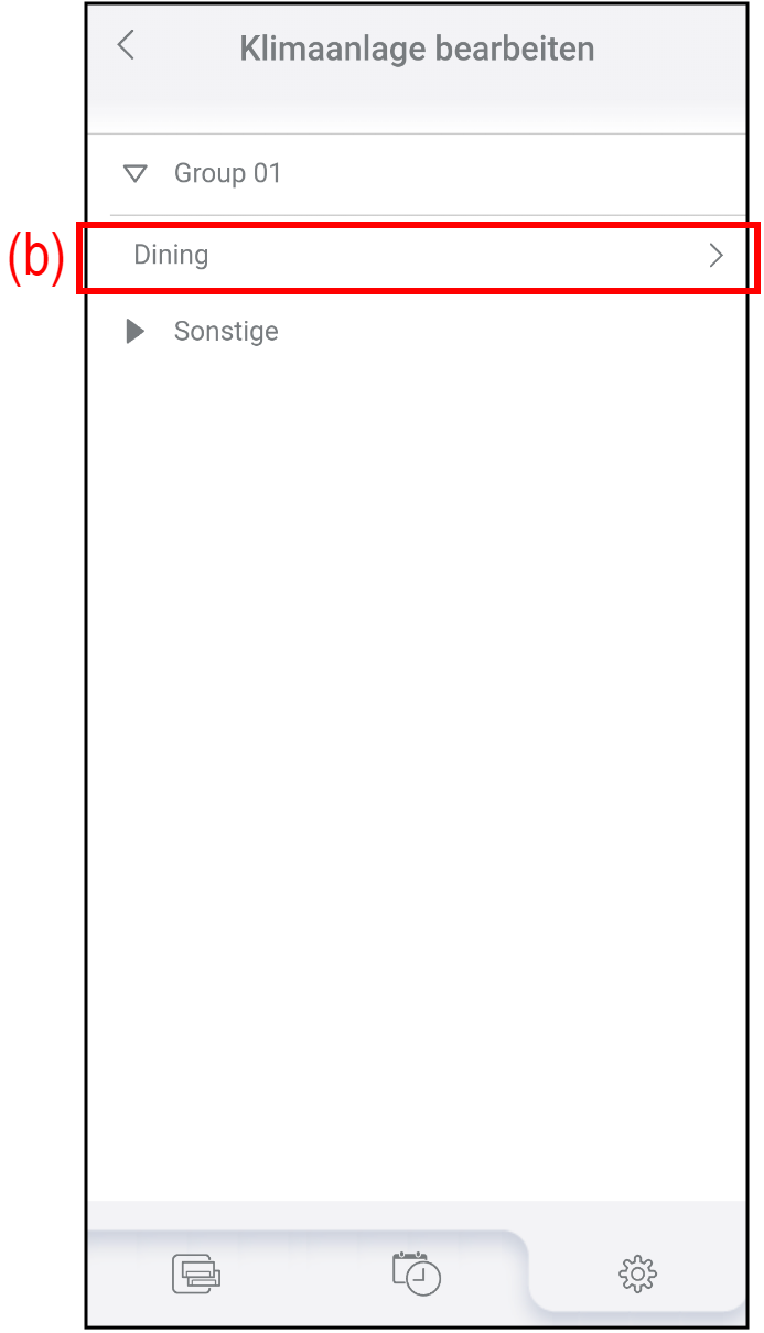 * Der ursprüngliche Name ist der Installationsraum, der bei der Registrierung der Klimaanlage festgelegt wurde.