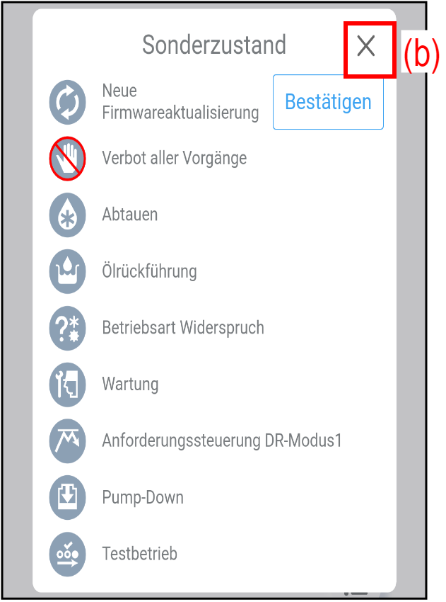 Tippen Sie auf (b), um das Fenster zu schließen.