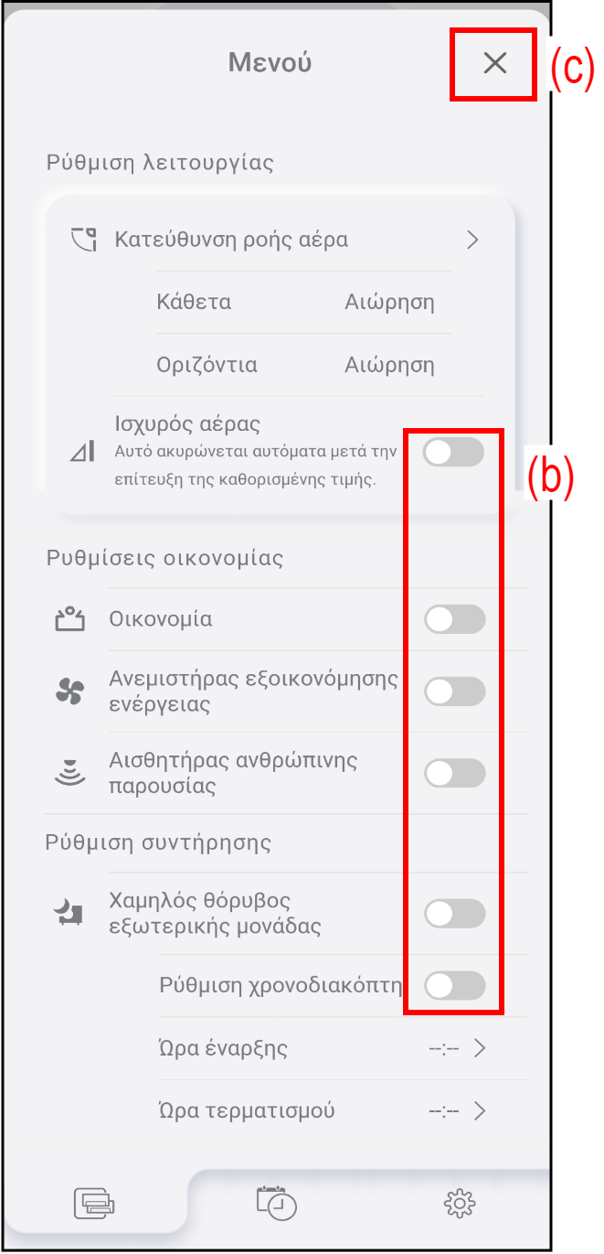 Πατήστε (b) για να ενεργοποιήσετε/απενεργοποιήσετε κάθε λειτουργία.