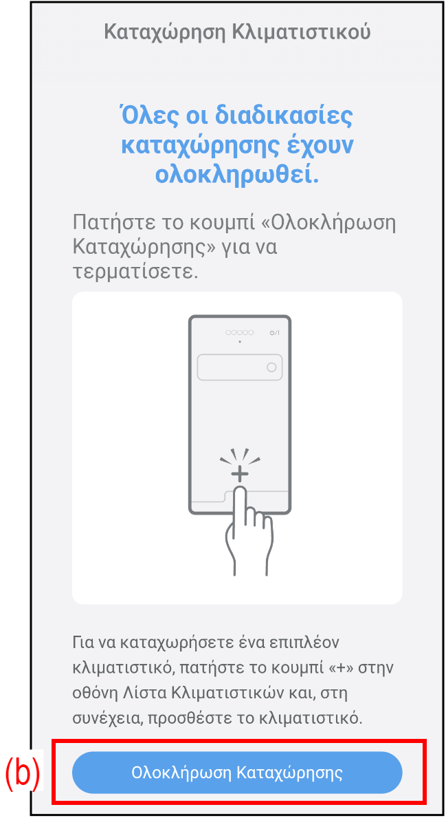 - Πατήστε (a) για να ξεκινήσετε την καταχώρηση ενός νέου κλιματιστικού σε αυτήν την εφαρμογή.