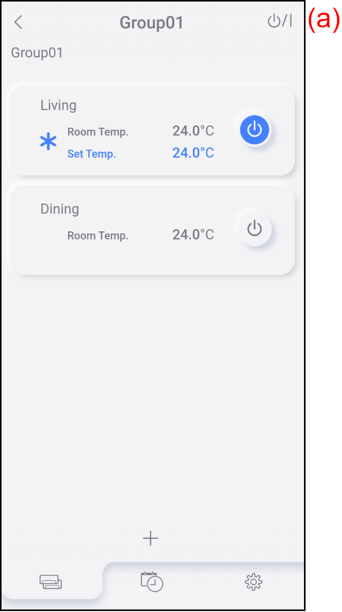 Tap (b) to start/stop the operation of all air conditioners in the group. Refer to "All start/stop operation" below for details.