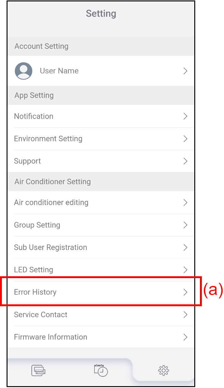 - Tap (b) to select the air conditioner and check the error history.