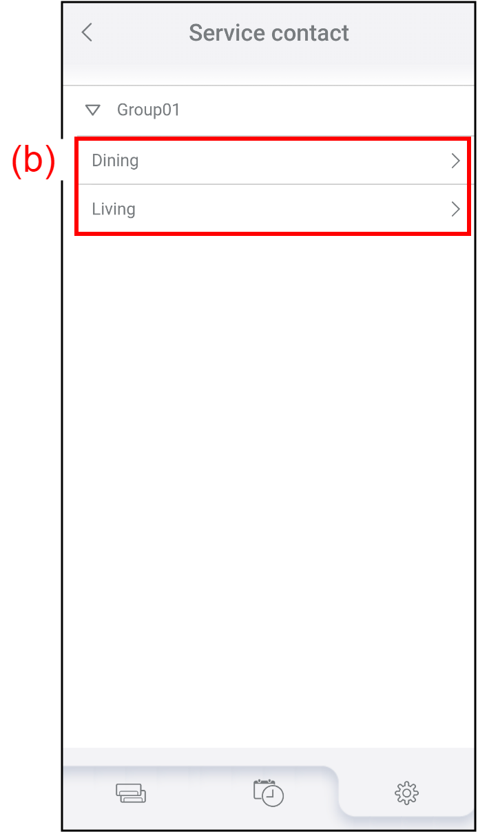 - Tap (b) to select the air conditioner to check or edit the information on the service contact.