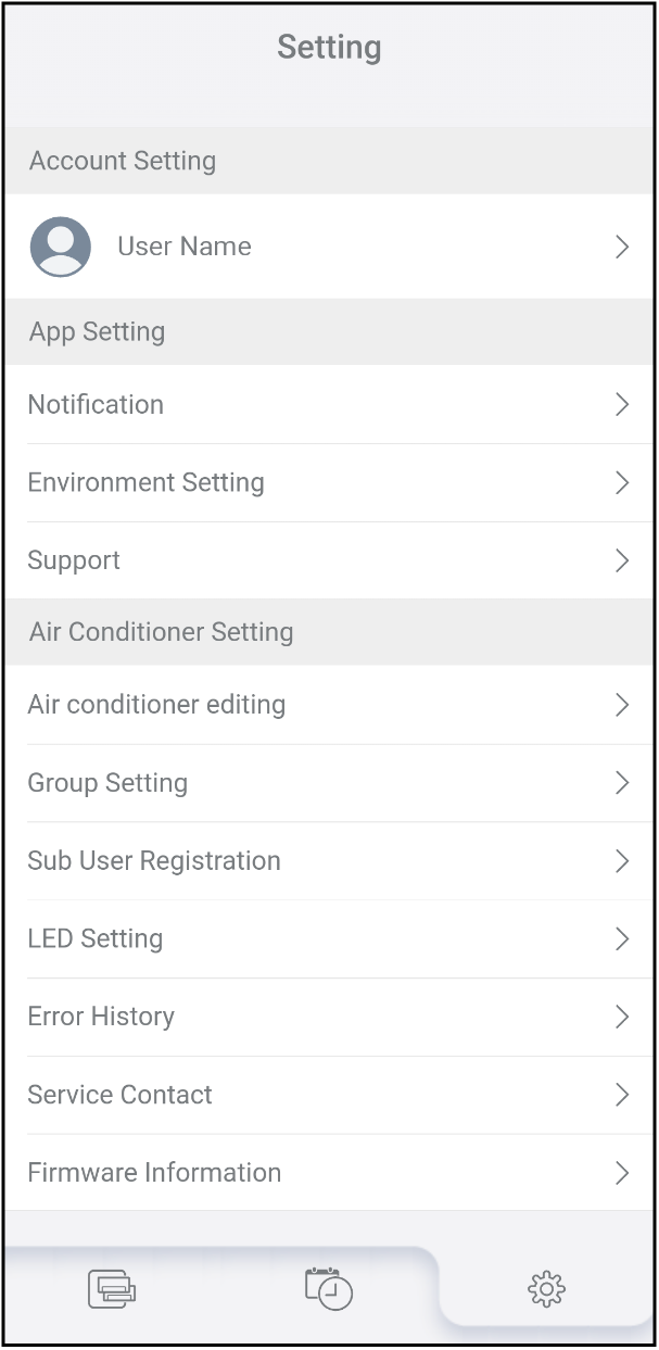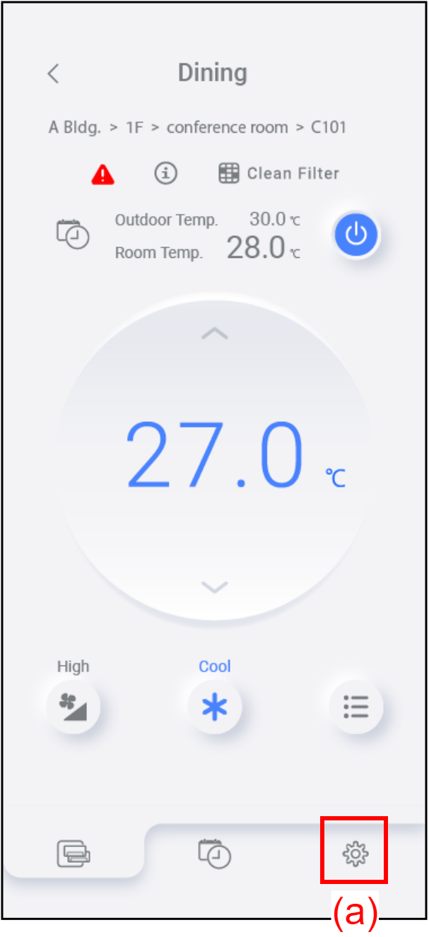 You can check and change the various settings for this app or the air conditioners from the Settings tab [