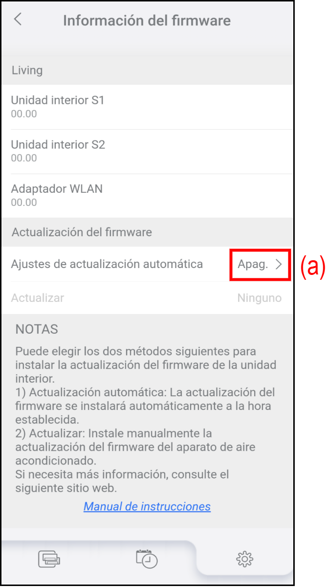 - Toque (a) en la pantalla "Información del Firmware" para editar la configuración de la actualización automática del firmware.