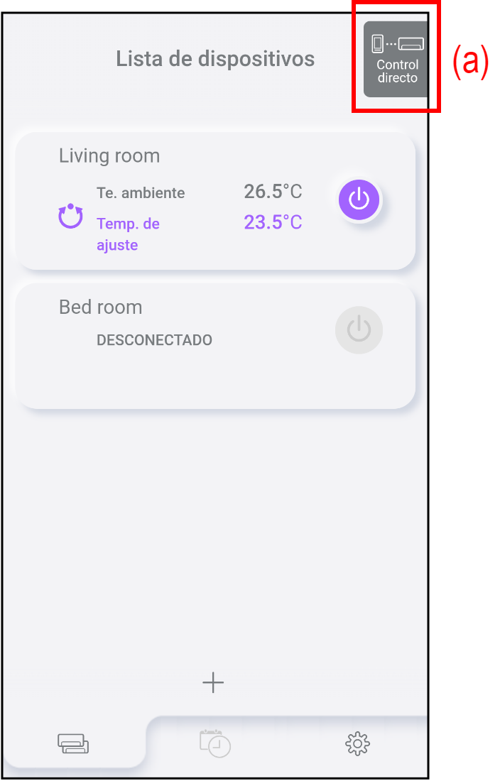Para cambiar el modo de control de Control de nube a Control directo, utilice esta aplicación como se indica a continuación: