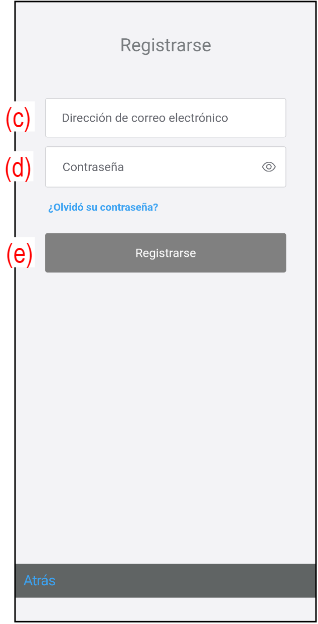 - Inicie sesión con la dirección de correo electrónico (c) y la contraseña (d) que ha registrado.