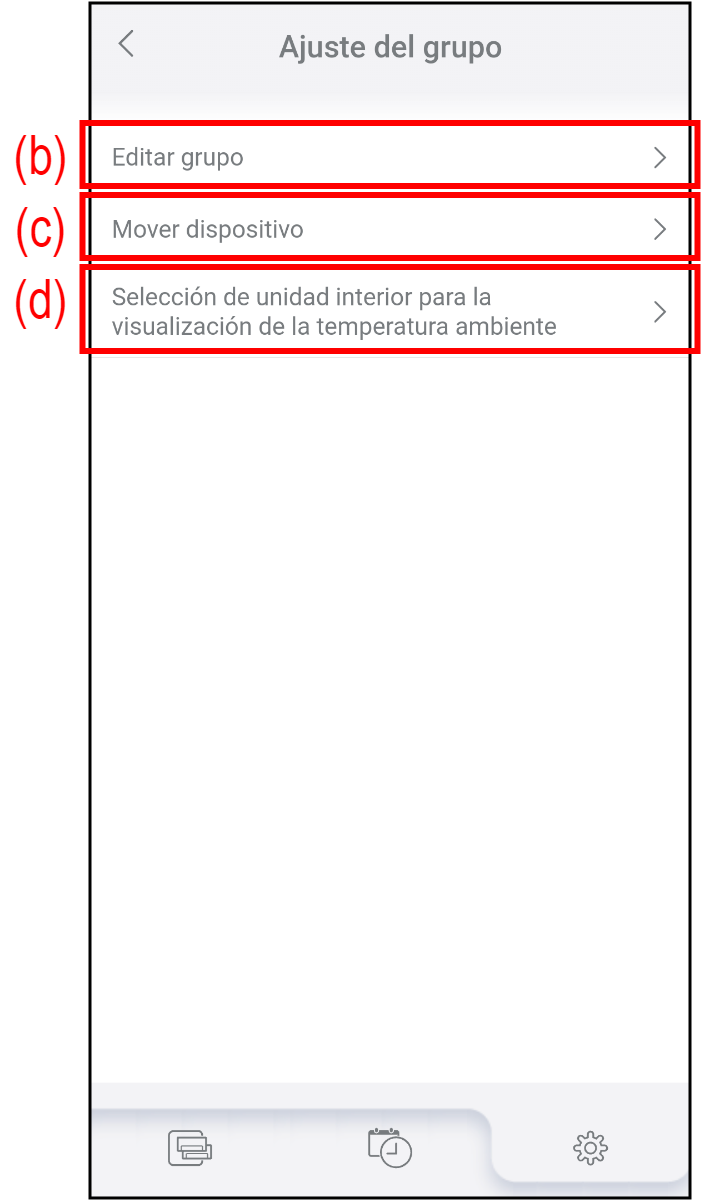 Toque para seleccionar el aire acondicionado representante del grupo. La visualización de la temperatura ambiente del grupo utiliza la temperatura medida por el aire acondicionado representativo.