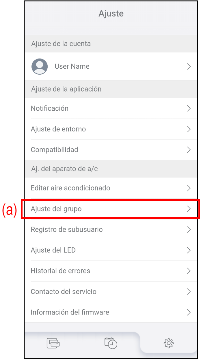 1. Toque (a) en la pantalla "Ajuste" para comprobar o editar los ajustes del grupo.