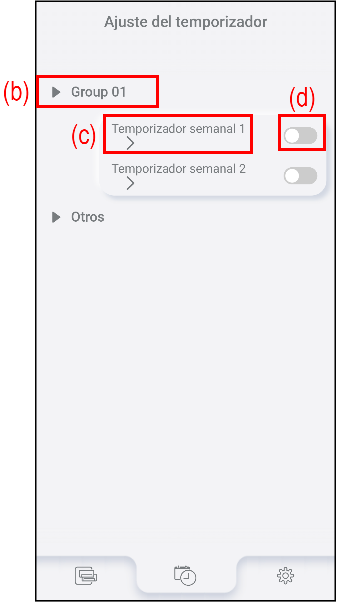 Configuración del temporizador de grupo (Si se establece el grupo)