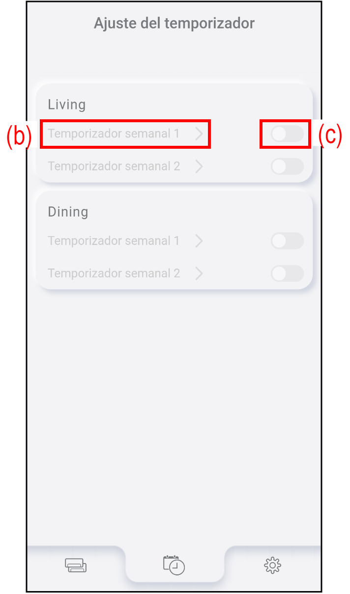 Toque (c) para activar/desactivar el temporizador semanal.