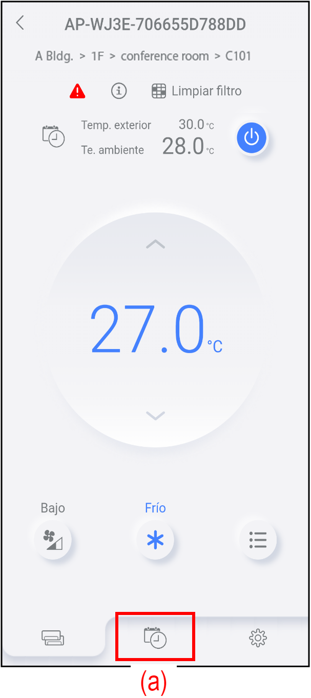 Puede ajustar el temporizador semanal para cada aparato de aire acondicionado tocando el nombre del aparato.