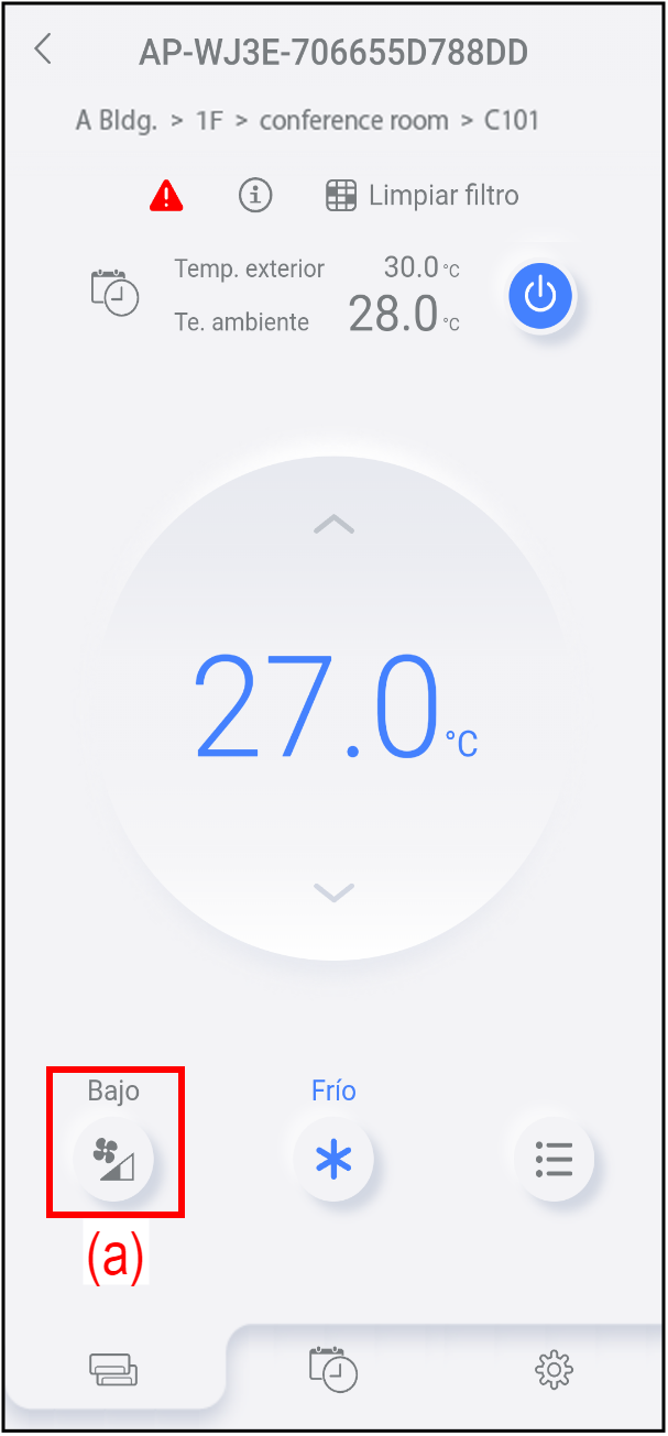 Desplace la barra (b) para ajustar la velocidad del ventilador.