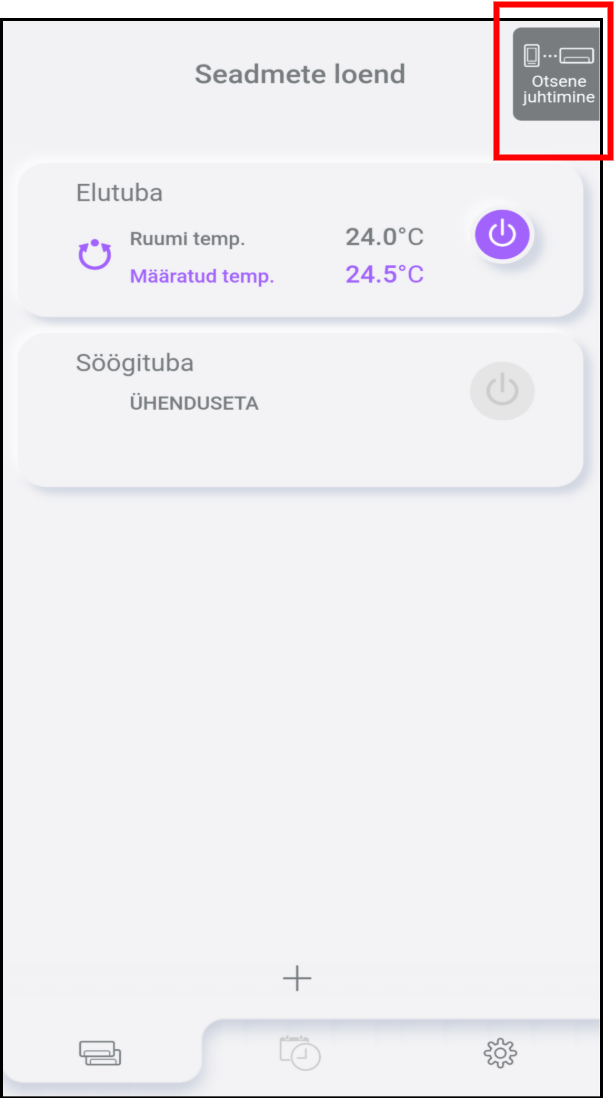 Juhtrežiimi vahetamiseks režiimilt „Cloud Control“ režiimile „Direct Control“ kasutage seda rakendust järgmiselt.