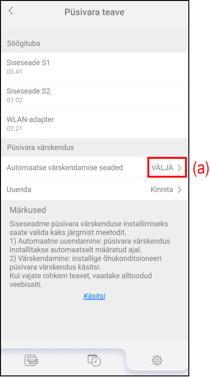 Püsivara automaatse värskenduse aktiveerimiseks puudutage (d).