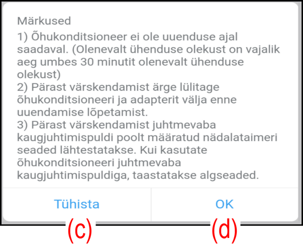 Akna sulgemiseks ilma püsivara automaatset värskendust aktiveerimata puudutage (c).