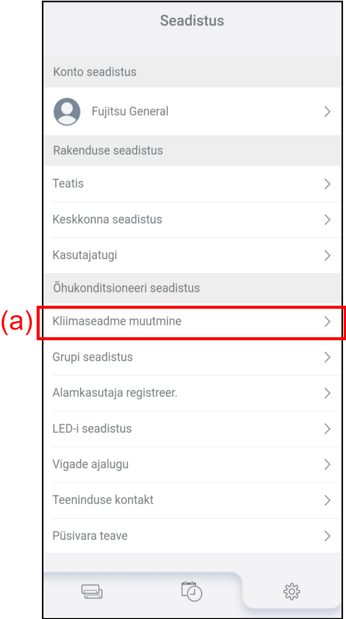 - Puudutage kliimaseadet (b), mille nime soovite redigeerida või kustutada.