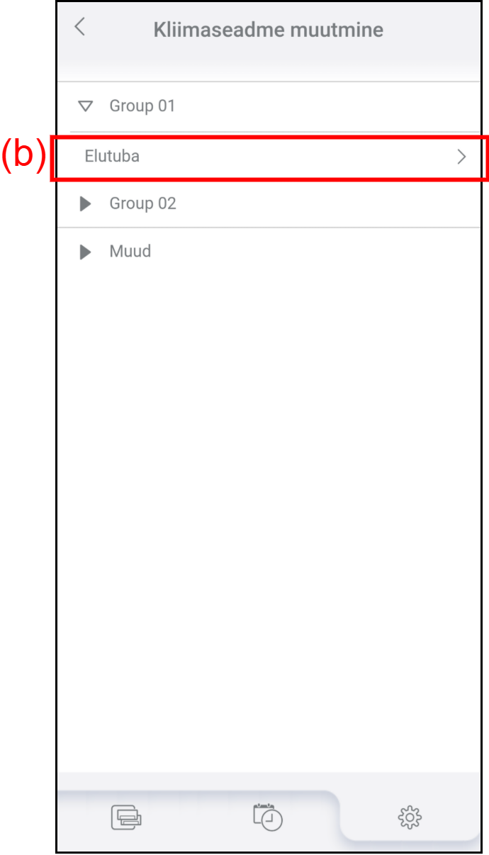 *Esialgne nimi on kliimaseadme registreerimisel määratud paigaldusruumi nimi.
