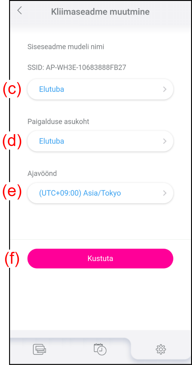 (c) Indoor unit model name Puudutage siseseadme nime muutmiseks. Muutke nime, kasutades kuni 20 tähemärki. (nt ruumi nimi)