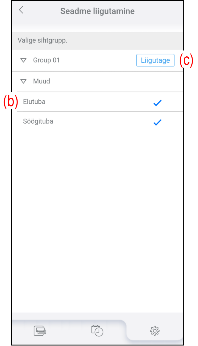 ] näitab valitud kliimaseadet. - Puudutage selle rühma nuppu (c), kuhu soovite teisaldada.
