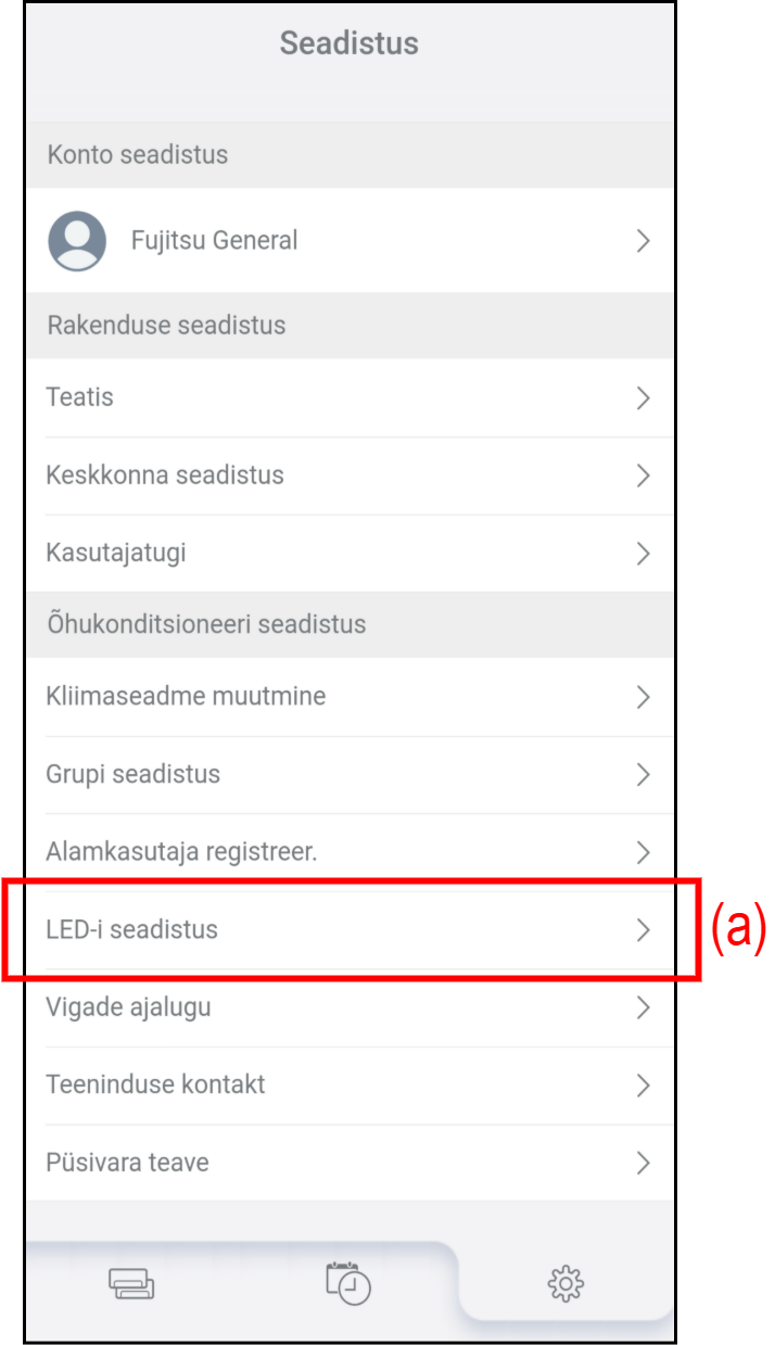 - LED-sätete muutmiseks puudutage ekraanil „Setting“ (a).