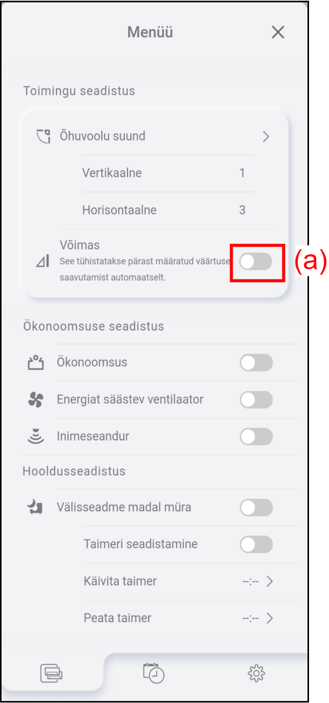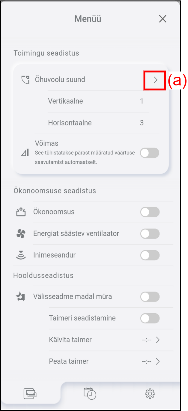 Puudutage (a), et reguleerida üles/alla või vasakule/paremale õhuvoolu suunda.