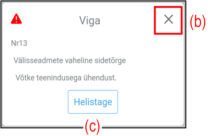 “, puudutage seda ikooni (a), et kontrollida vea üksikasju.