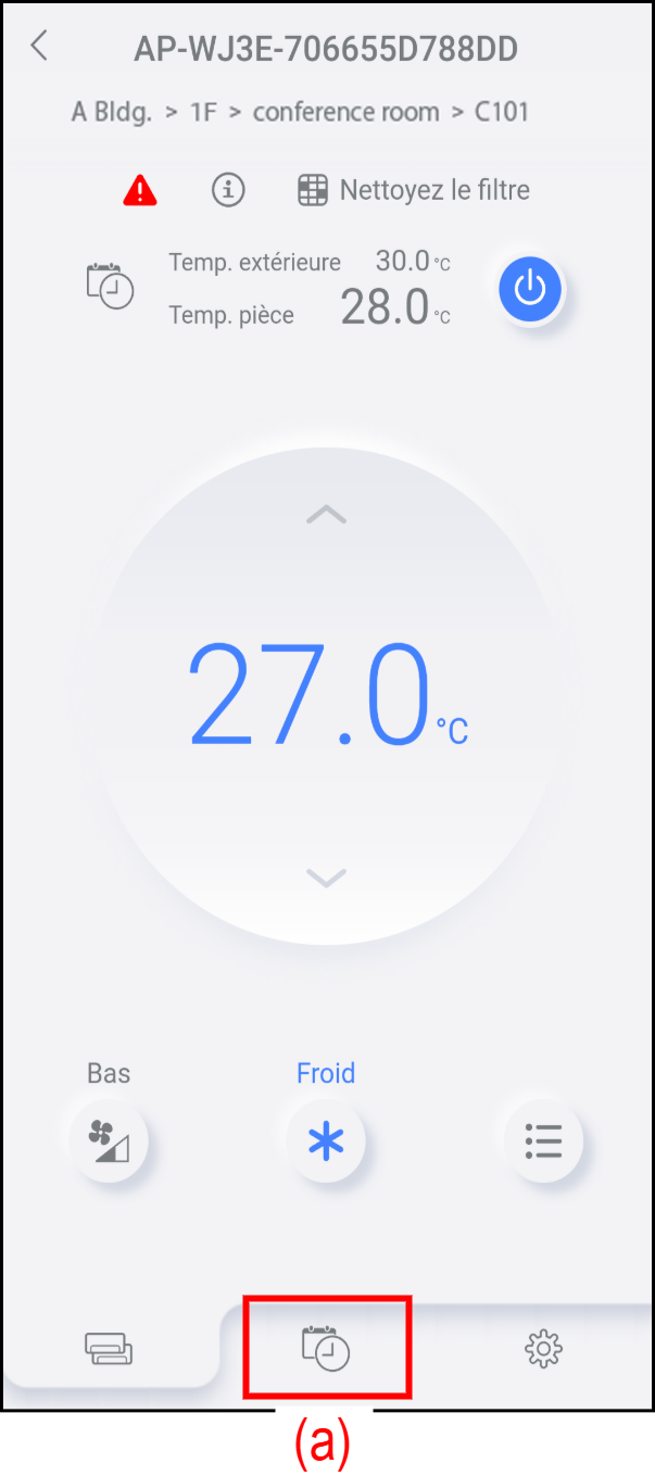 Vous pouvez régler la minuterie Hebdomadaire pour chaque climatiseur en appuyant sur le nom du climatiseur.