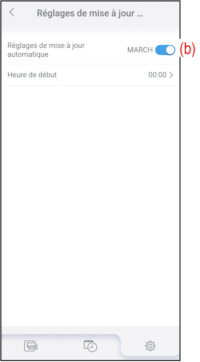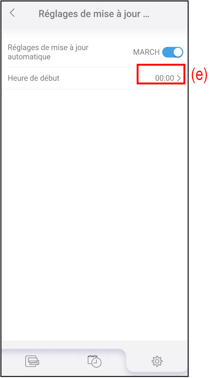 - Appuyez sur (e) pour définir l'heure de démarrage de la mise à jour automatique du micrologiciel.
