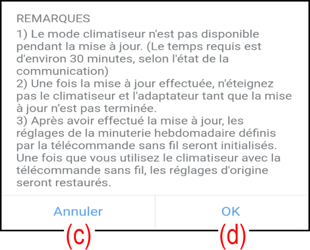 Pour fermer la fenêtre sans activer la mise à jour automatique du micrologiciel, appuyez sur (c).