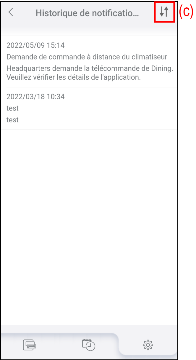 L'historique des notifications est affiché dans l'ordre de la dernière première.