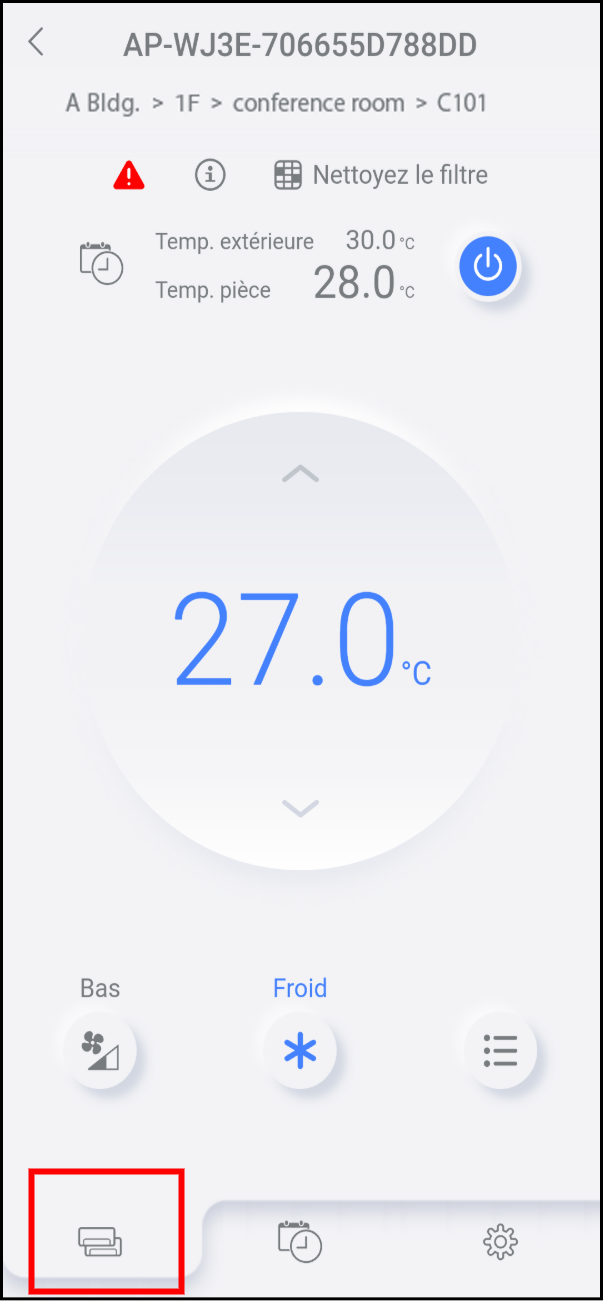 Vous pouvez utiliser les fonctions de base des climatiseurs depuis l'onglet climatiseur ( [