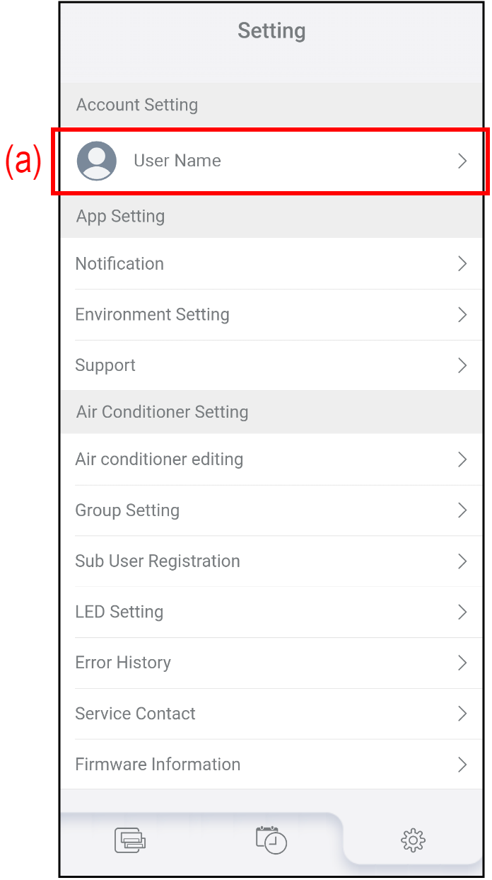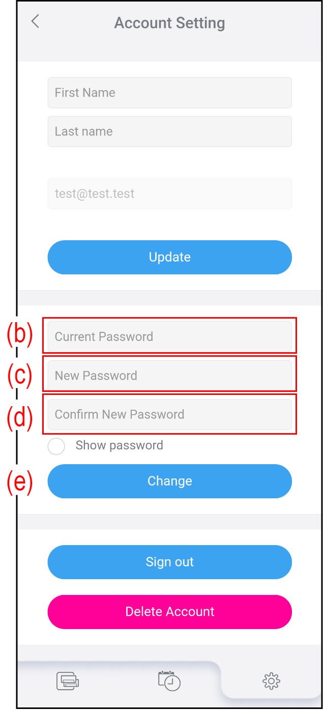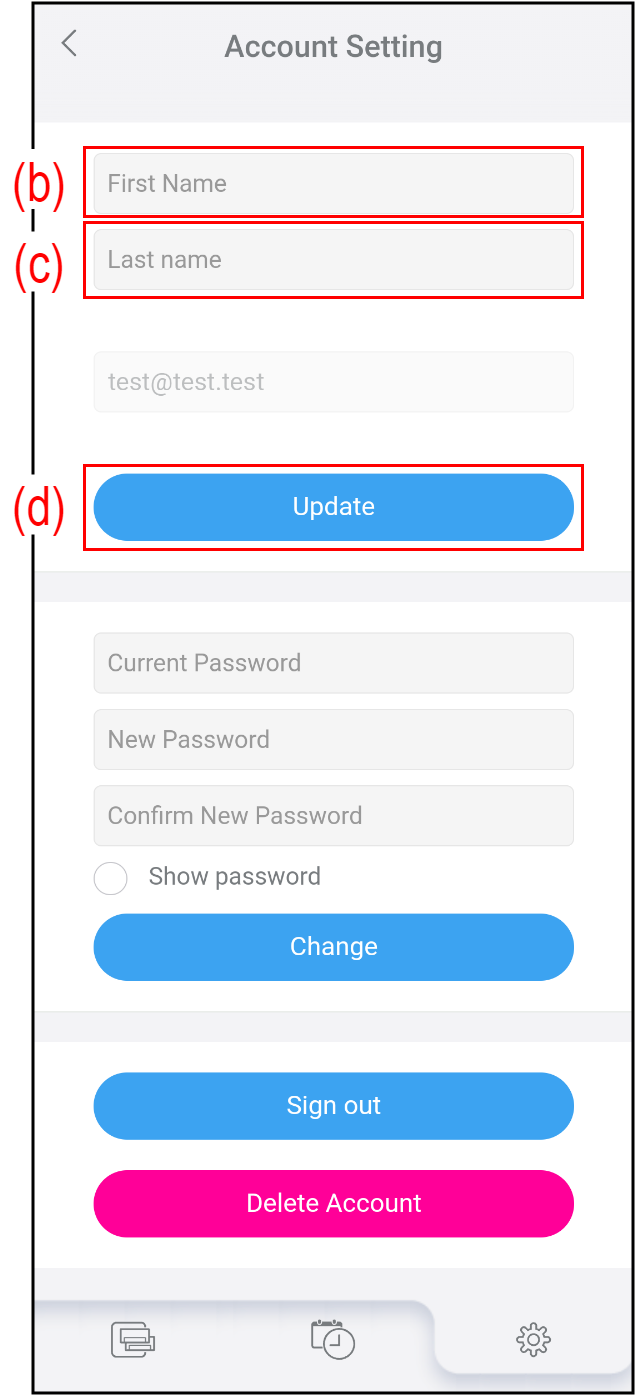 Dodirnite (a) na zaslonu „Setting“ za promjenu informacija o svom računu i lozinke.