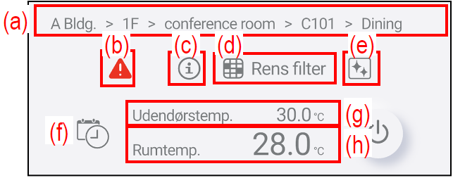 | (a) | Naziv grupe | Pokazuje naziv grupe, u kojoj je klimatizacijski uređaj. Ako grupa nije postavljena, ova se stavka ne prikazuje. |