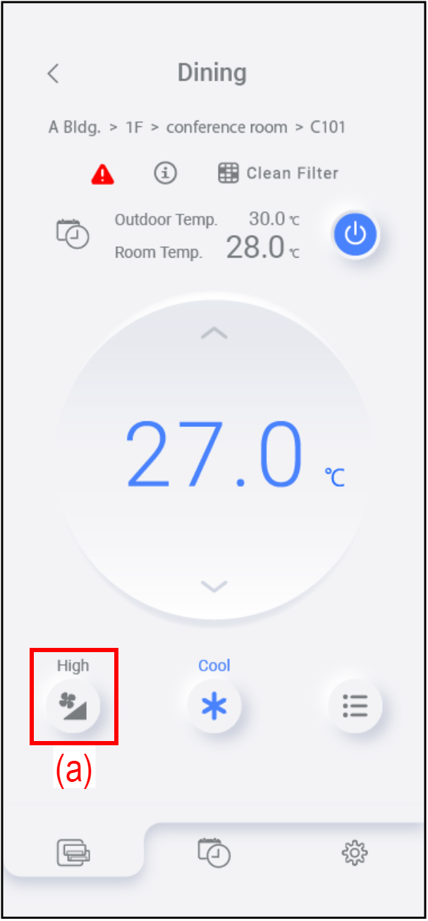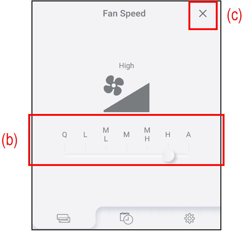 Pomičite traku (b) kako biste prilagodili brzinu ventilatora.