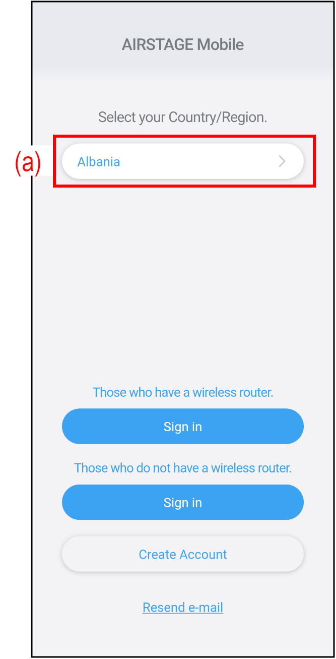 - Ako nemate račun za AIRSTAGE Mobile, izradite novi račun slijedeći „Stvaranje računa“.