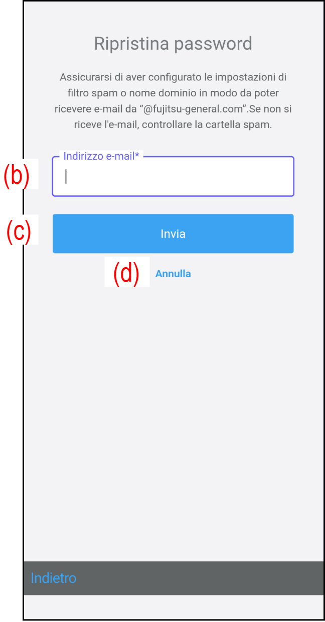 1. Se non si ricorda la propria password, toccare (a) sulla schermata "Accedi".