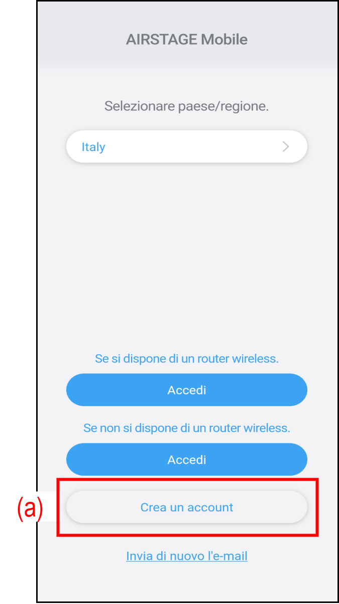 * Se non si riceve un’e-mail di conferma, verificare che l’indirizzo e-mail inserito sia corretto e toccare il pulsante [Invia di nuovo l'e-mail] sulla schermata "Accedi" per richiedere di inviare di nuovo l’e-mail.