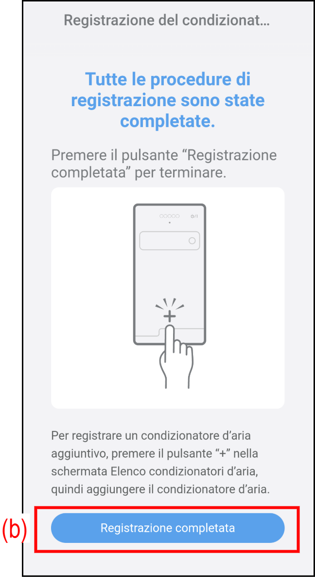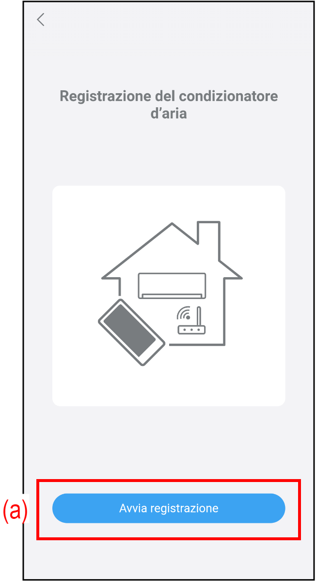 - Toccare (a) per avviare la registrazione di un nuovo condizionatore d’aria sull’app.