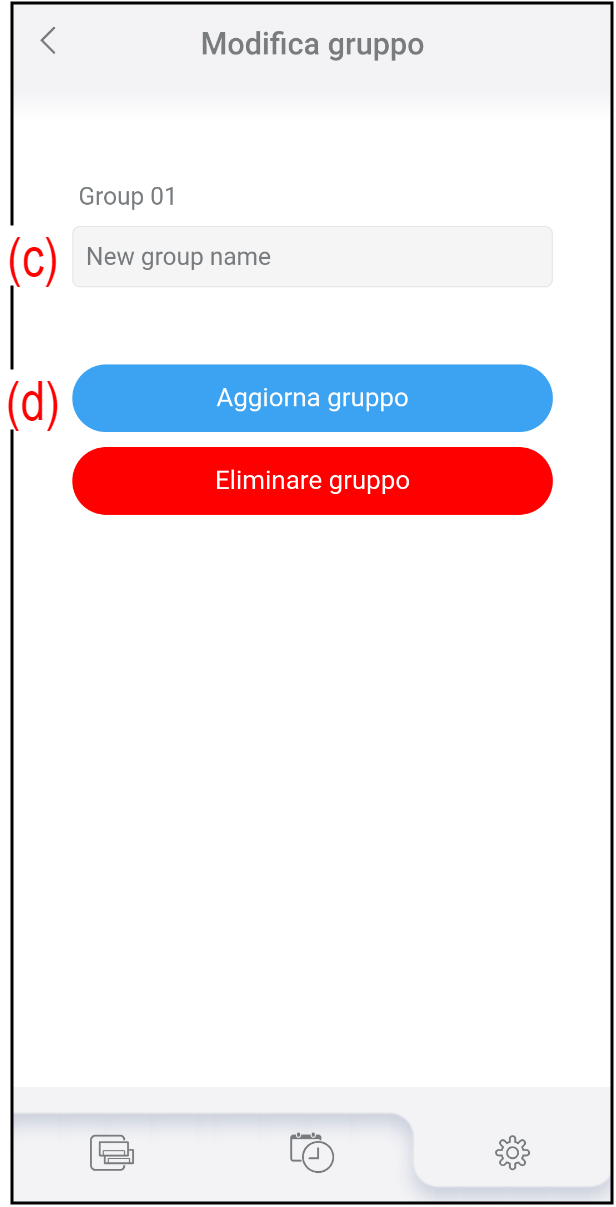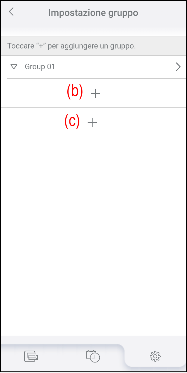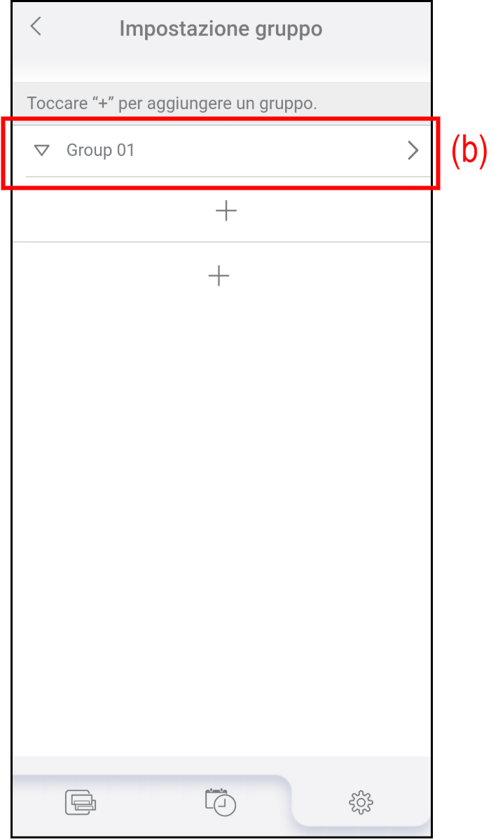Per aggiungere un gruppo di livello superiore, toccare "" nella parte inferiore della schermata. (Il pulsante (c) nella figura seguente).