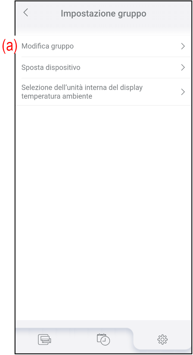 Toccare (a) sulla schermata "Impostazione gruppo".