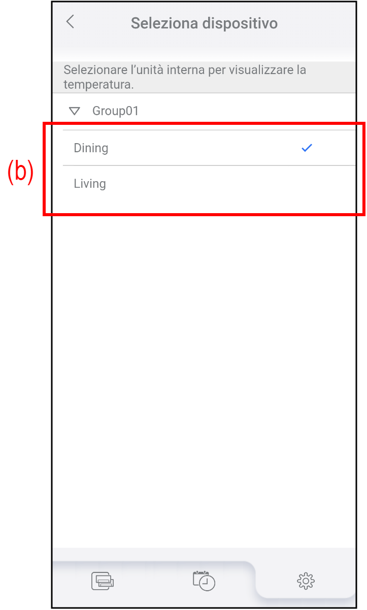 - Toccare (b) per selezionare il condizionatore d’aria da utilizzare come condizionatore d’aria rappresentativo.